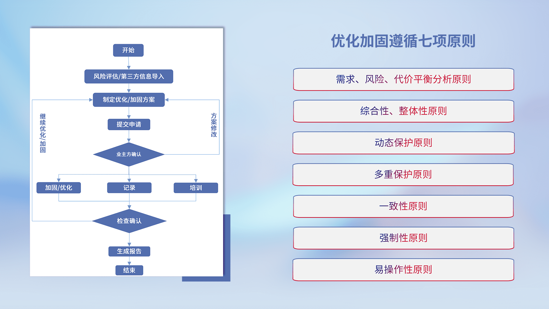 最大程度利用现有资产,,,对评估发现的问题进行封堵与整改,,,,防止漏洞被利用,,,,提升整体网络安全性,,为客户带来高标准的优化加固服务。。